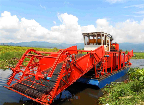 割草船是一種集割草、聚攏、打撈、濾水、輸送、卸載等于一體的現代化水草、水葫蘆收割設備。所有操作程序采用全液壓控制,簡單、方便、靈活,是城市水面景區不可或缺的保潔設備,也可作為垃圾清理船、湖面保潔船均收到良好的效果。